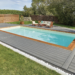 Cette piscine aux margelles en bois composite est un kit piscine enterrée au look inimitable …