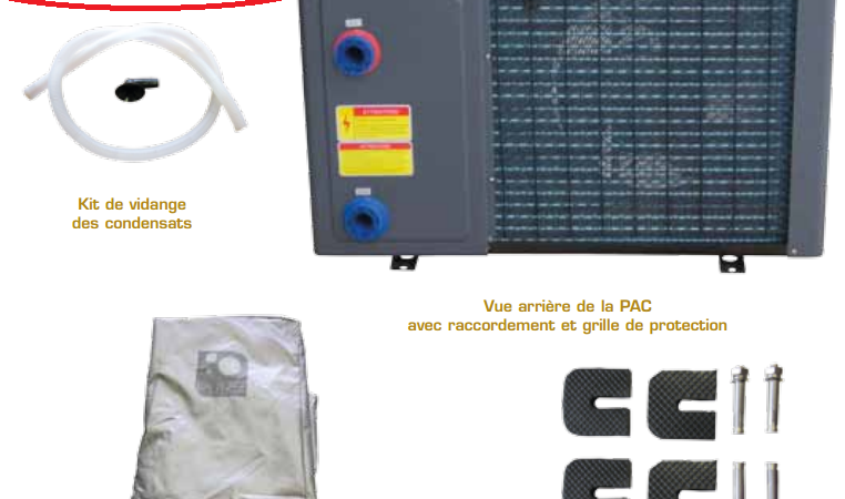 – Chaque PAC PURE EVO est fournie avec sa housse d’hivernage, son kit de vidange des condensats et son kit de fixation Silent-Blocs –