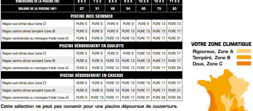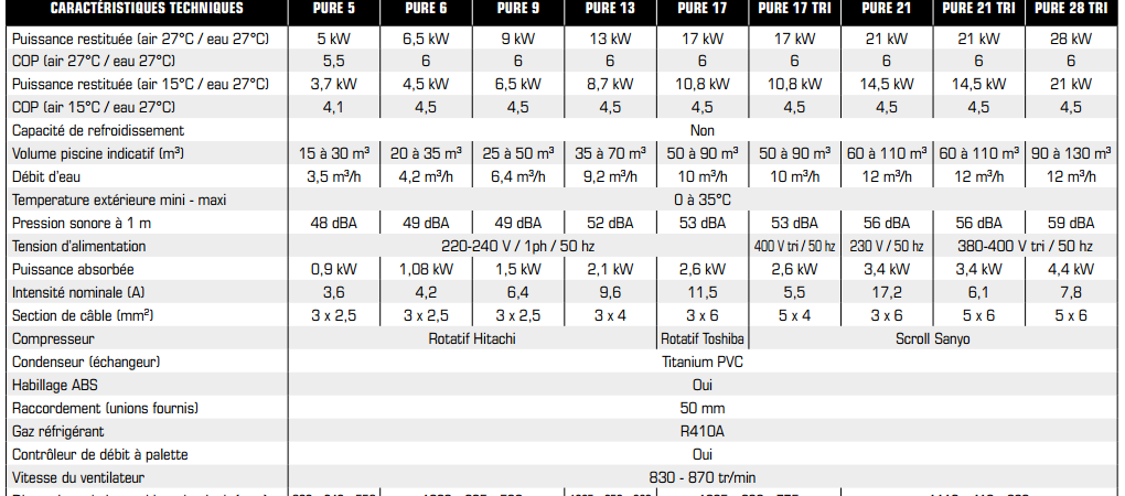| PURE PAC | Alimention électrique | Volume piscine (m³) | Prix |