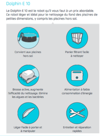 Découvrez le robot de piscine Dolphin E10. Fabriqué par Maytronics ce robot aspirateur est parfait pour tout type de piscine notamment les piscines Zodiac Original™.